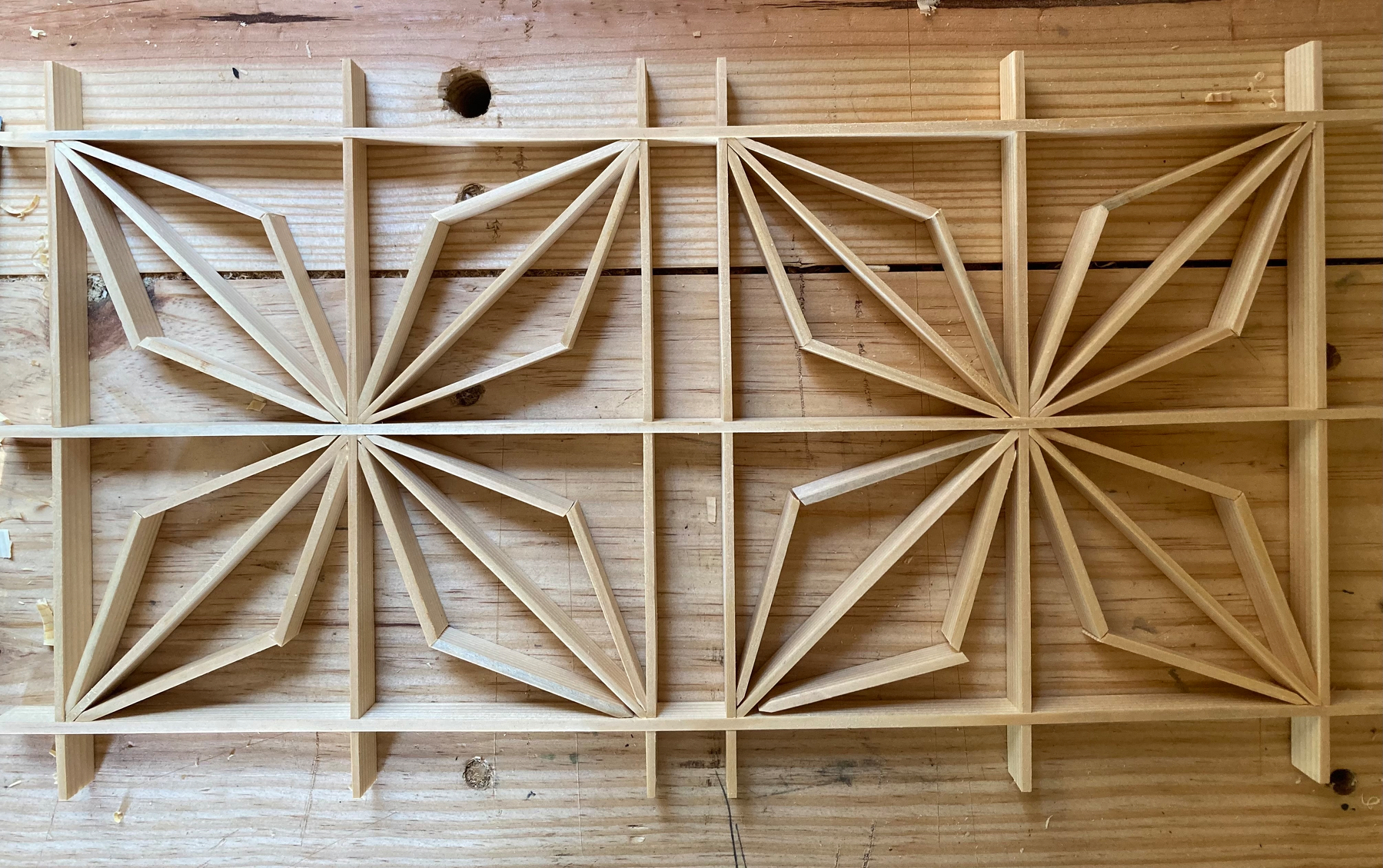 November 9, 2025 Isaac Greene It’s a perfect fall day in South Carolina. Making good progress on the panel. Only 56 more angles to cut.