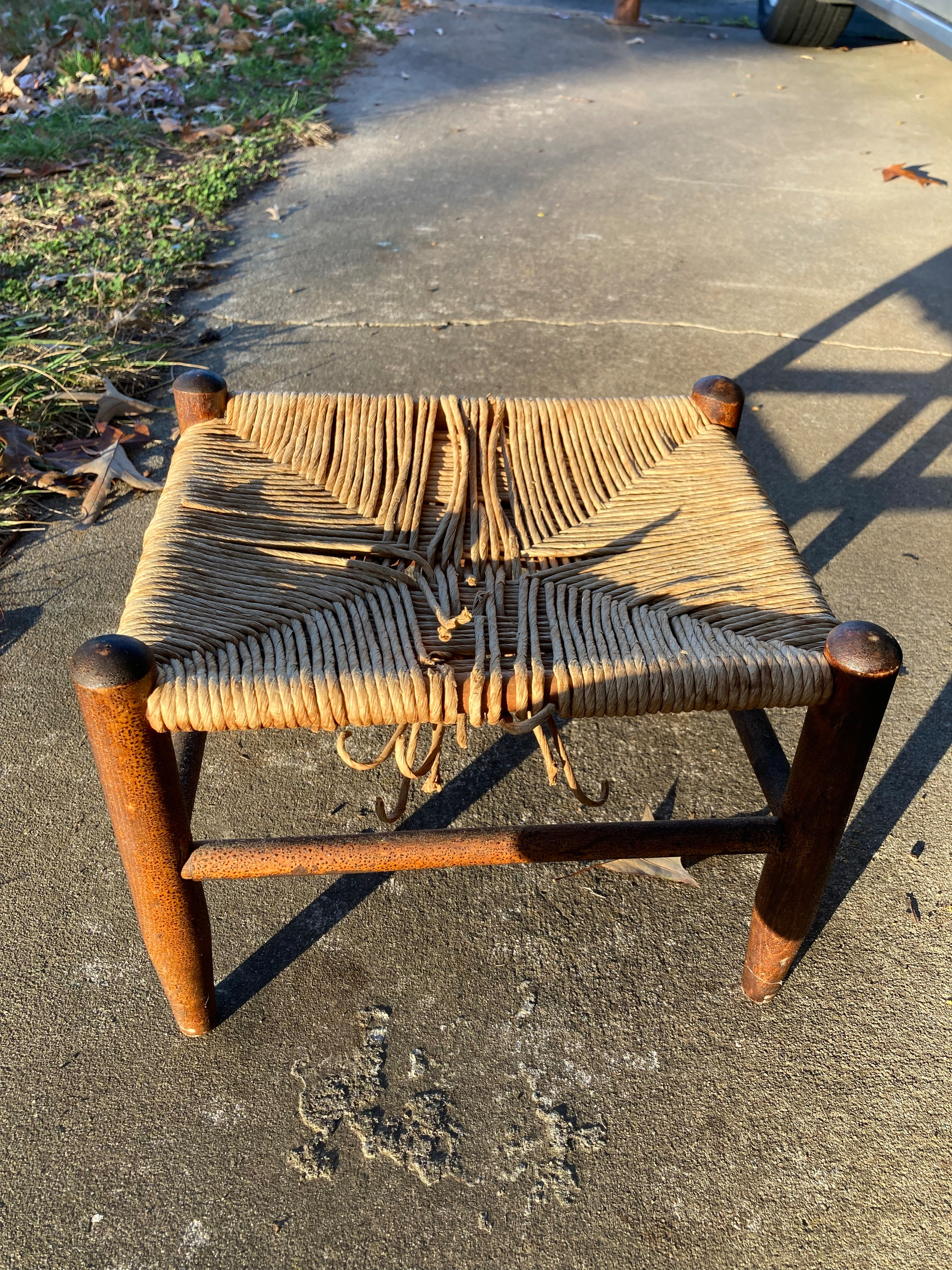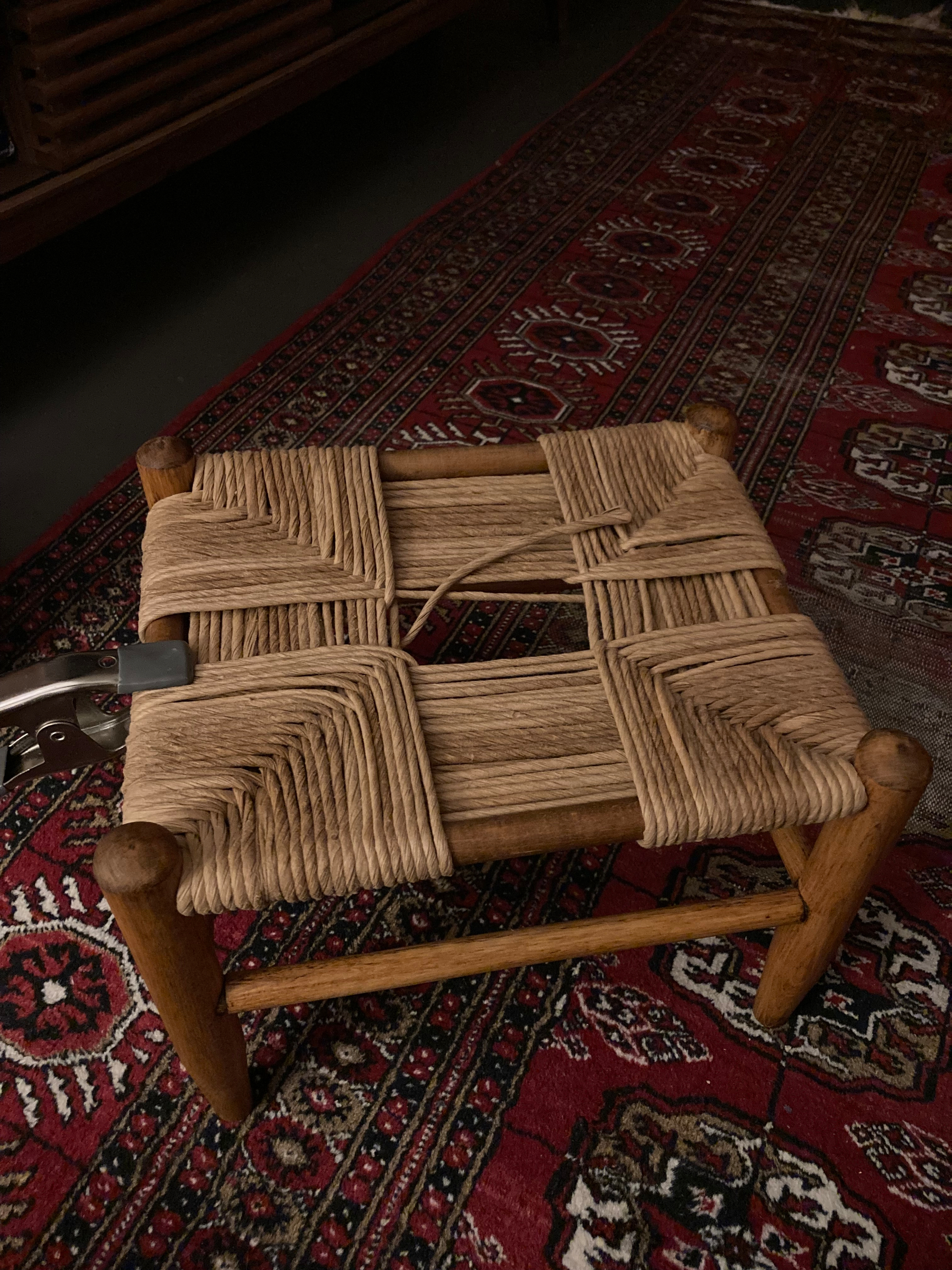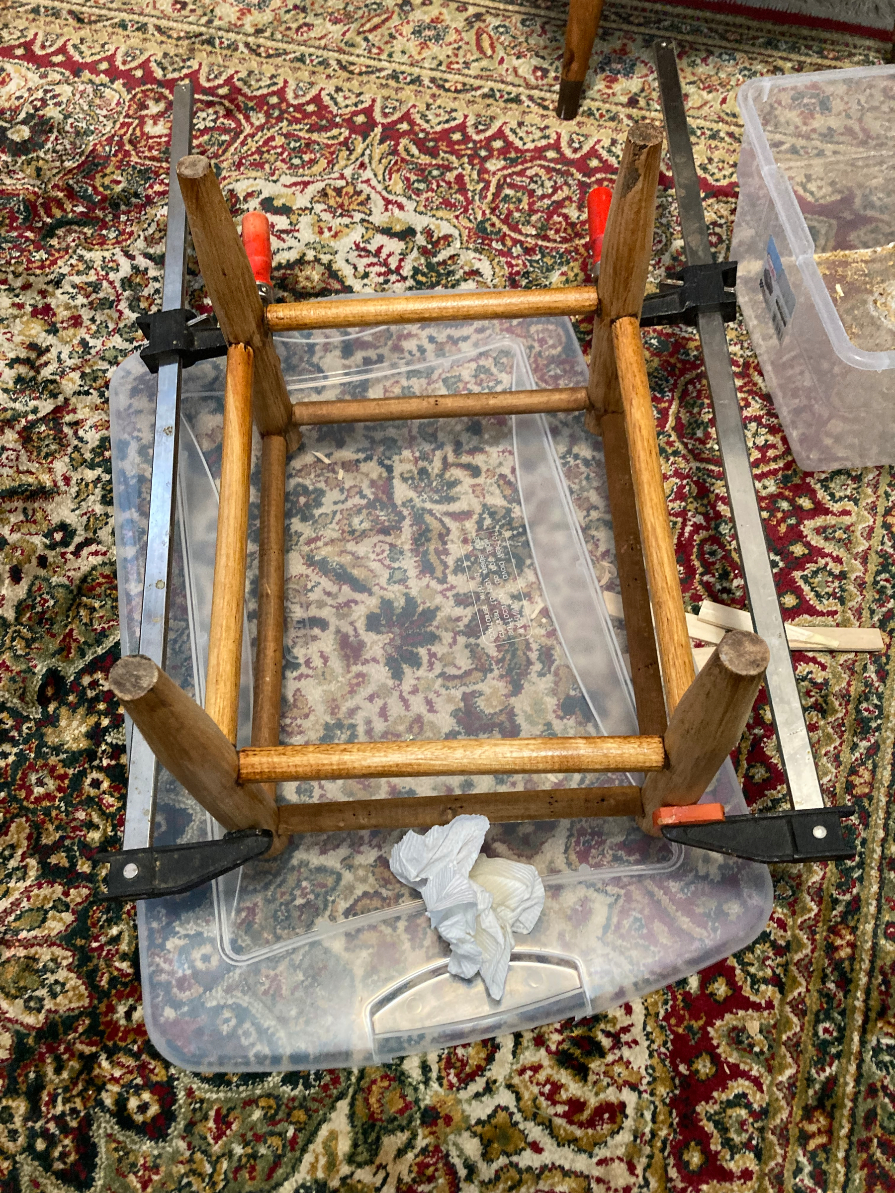 Before, during, and after of a stool I restored for my dear friend George. George is in his 80s and the stool was his mother’s, I think it’s over 100 years old.