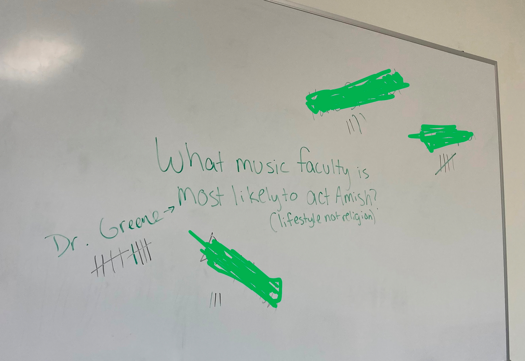 Went into my classroom yesterday to find I had won a commanding victory in this informal poll of students. (Identities of my non-Amish colleagues protected). Must be how I manage to quote Wendell Berry occasionally teaching music theory.